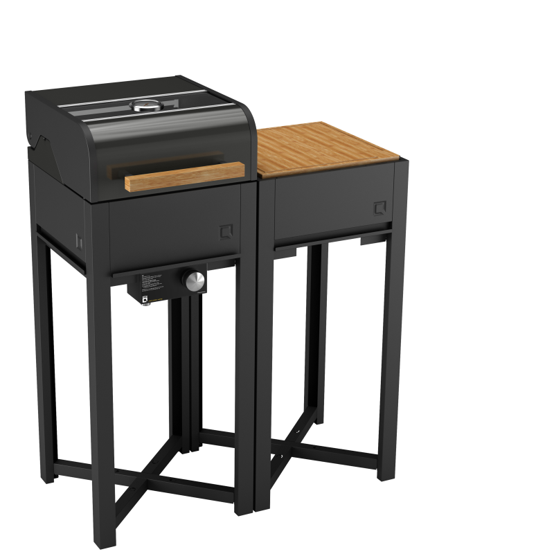 Alle oneQ modules kunnen worden geplaatst in onze koppelbare onderstellen: de oneQ Legs. Deze kunnen eenvoudig aan elkaar worden geklikt en weer losgekoppeld. U kunt de barbecue opstelling dus op ieder gewenst moment wijzigen of uitbreiden.